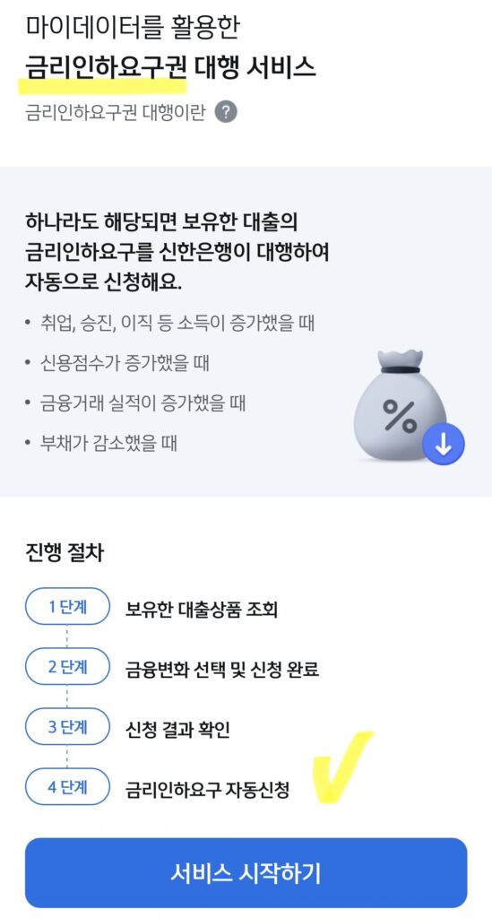 은행은 절대 알아서 대출 이자를 깎아주지 않더라고요. 밑져야 본전이라는 생각으로 폰으로 금리인하요구권 눌러봤는데 진짜 이자가 줄어서 깜짝 놀랐어요!!